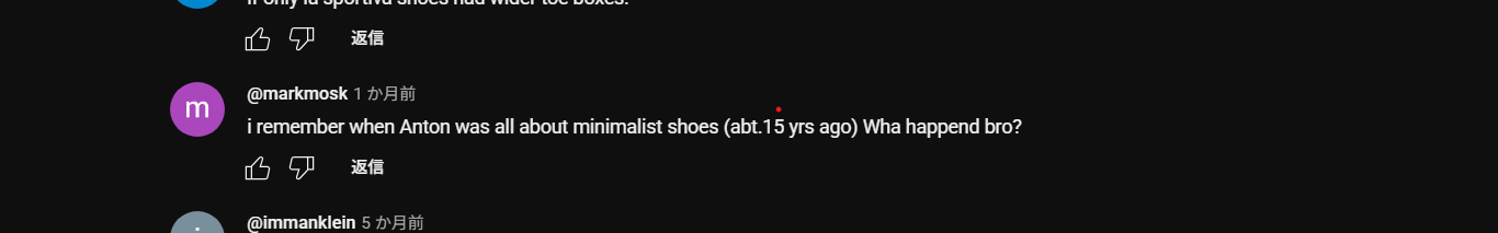 そうそう当時、こんなワイルドなオジサンになりたいと思っていましたね。このAnton Krupicka選手はできるだけ裸足に近い形で山を走るのがいいんだと言っていて、なぜか上半身も裸でも走っているトレイルランナーでした。と思って最近の動画を探してみると、Anton Krupickaさんはなんと厚底のトレイルランシューズを紹介しているではないですか。