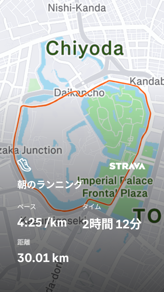 来年の勝田マラソンに向けて皇居で30km走ってきましたので、久しぶりに練習報告です。