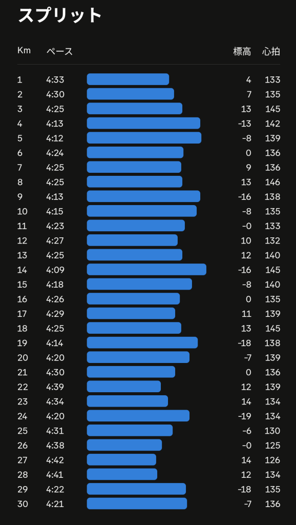 ペースは4分30秒を設定しましたが、皇居は平坦ではないので一定にはならないですね。